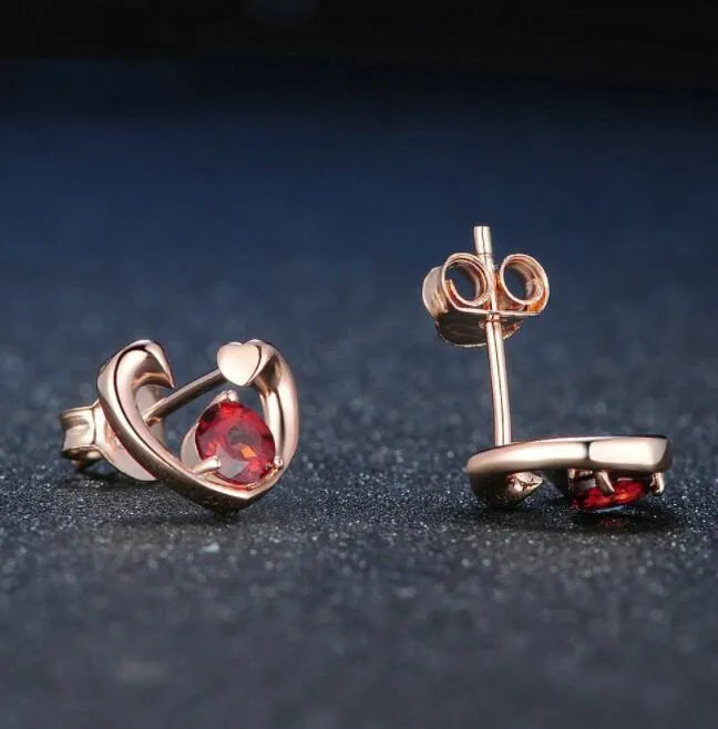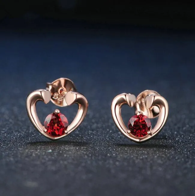 S925 Pure Silver Natural Garnet Rose Gold Stud Earrings