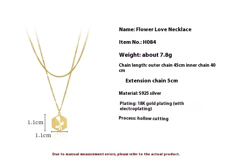 The French style design is known for its sophistication and minimalist allure. The S925 Silver Double-layer Necklace incorporates these elements with a carefully thought-out layered structure that is both graceful and modern. The double-layer design adds depth to your look, creating a more dynamic effect compared to a single strand necklace.