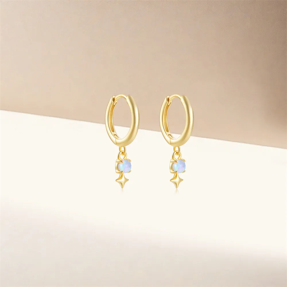 S925 Sterling Silver Diamond Embedded Star Opal Ear Clip