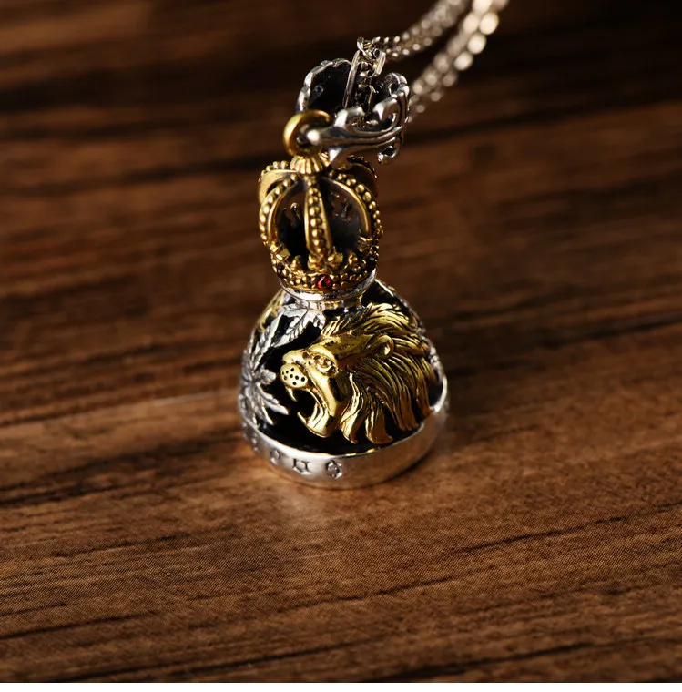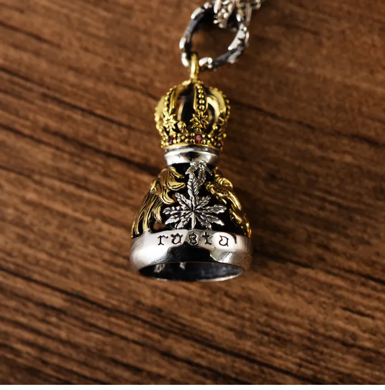 S925 Sterling Silver European And American Domineering Crown Lion Maple Leaf Hollow Bell Trendy Men's Pendant