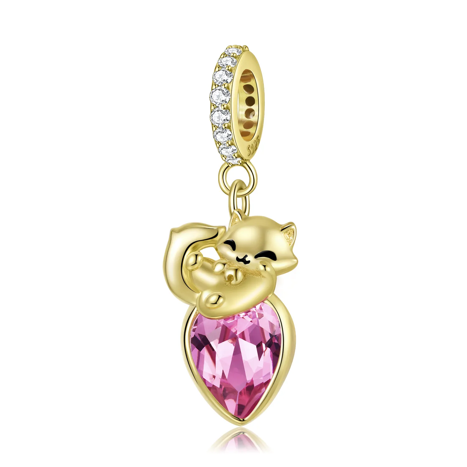 S925 Sterling Silver Gold-plated Pendant Cute Fox Pendant Bracelet Necklace Diy Accessories