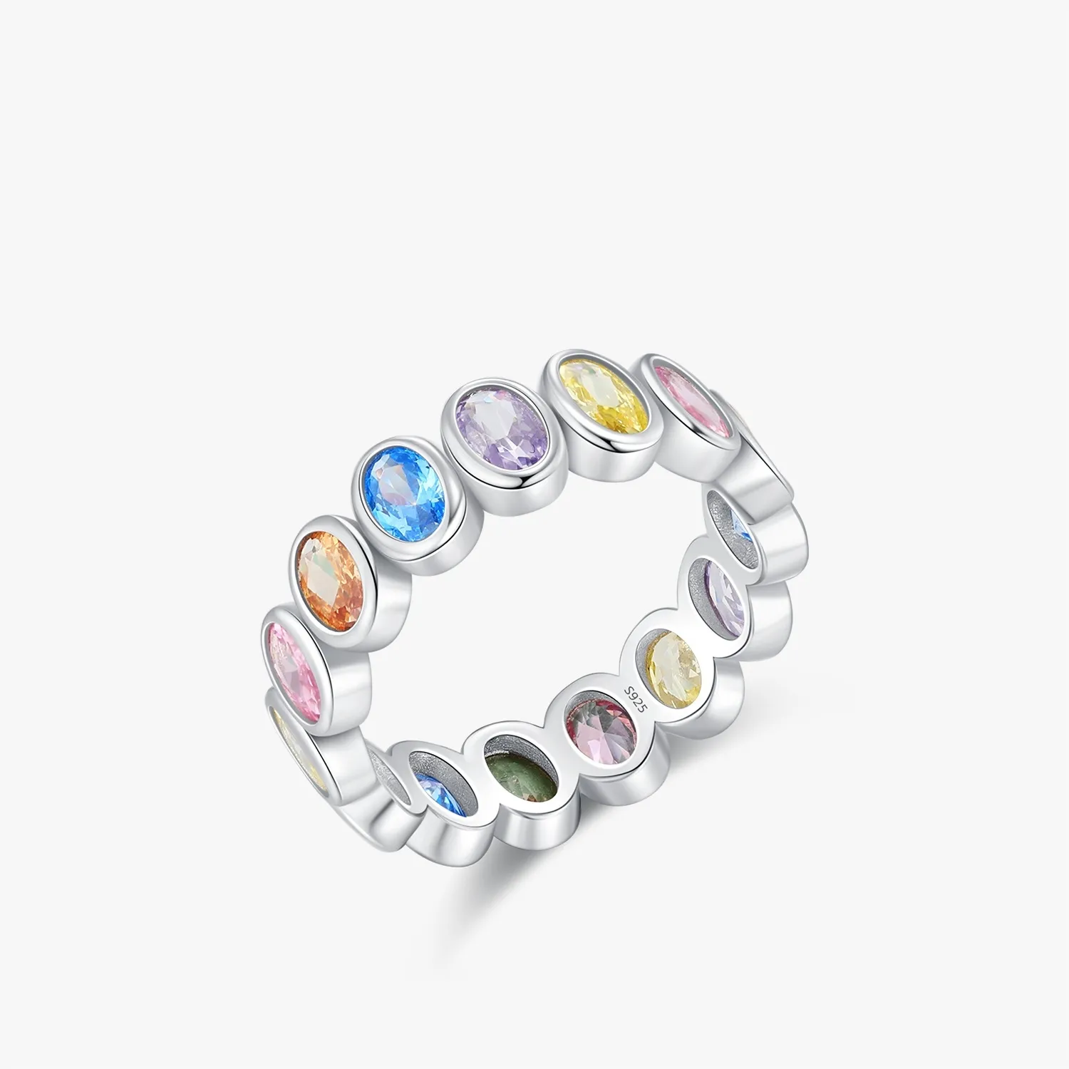 S925 Sterling Silver New Style Original Color Oval Zircon Stackable Ring