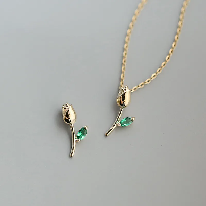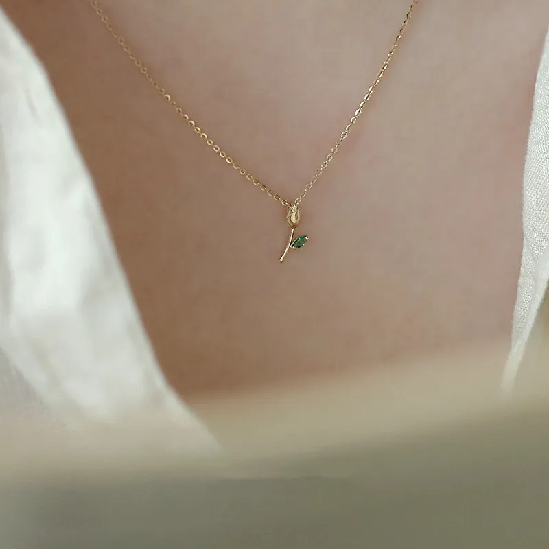 S925 Sterling Silver Rose Necklace Feminine Pendant Small Flower