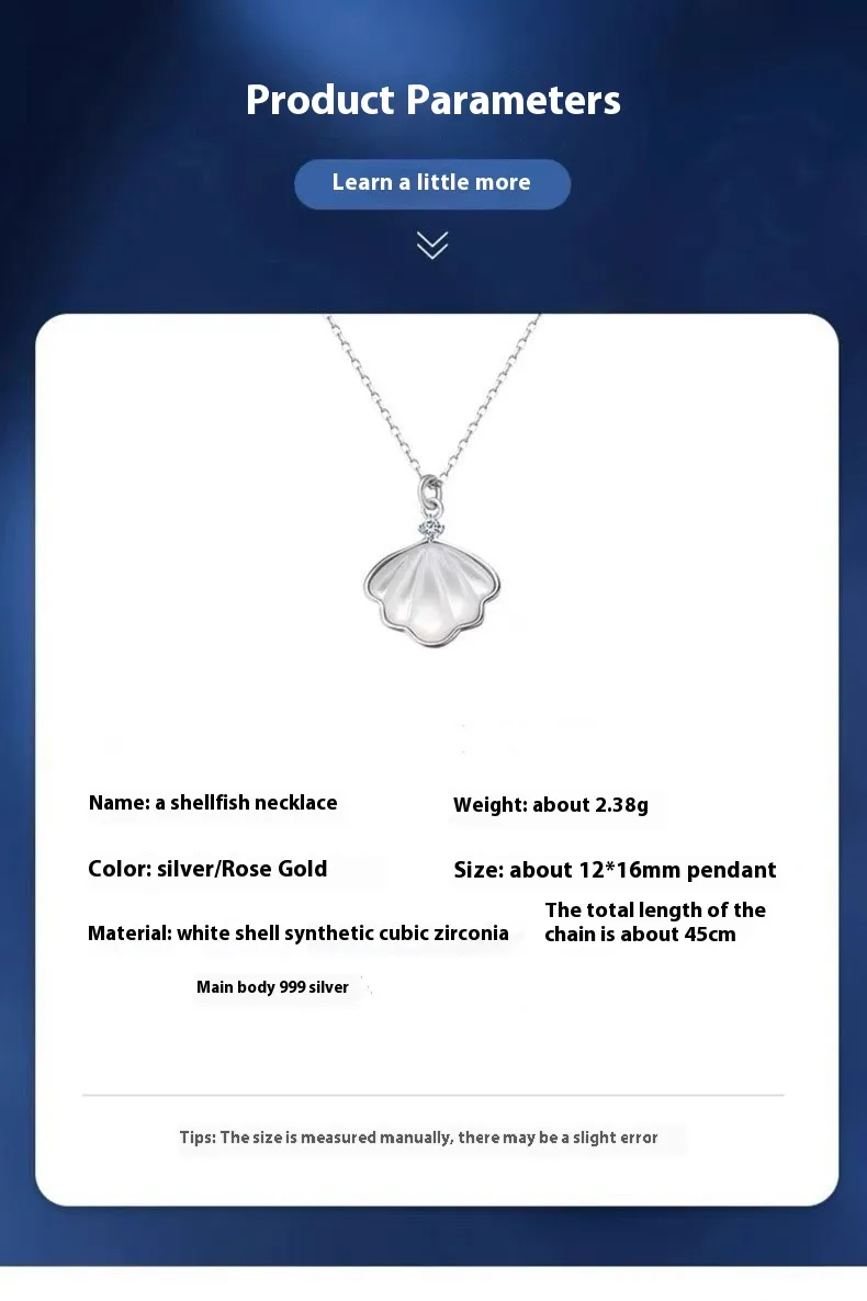 Introducing the S999 Sterling Silver Shell Necklace for Women, a delicate and minimalist clavicle chain designed for women who love understated elegance and ocean-inspired beauty. Featuring a high-quality shell pendant crafted in fine sterling silver, this necklace is perfect for those who appreciate simple yet sophisticated jewelry.