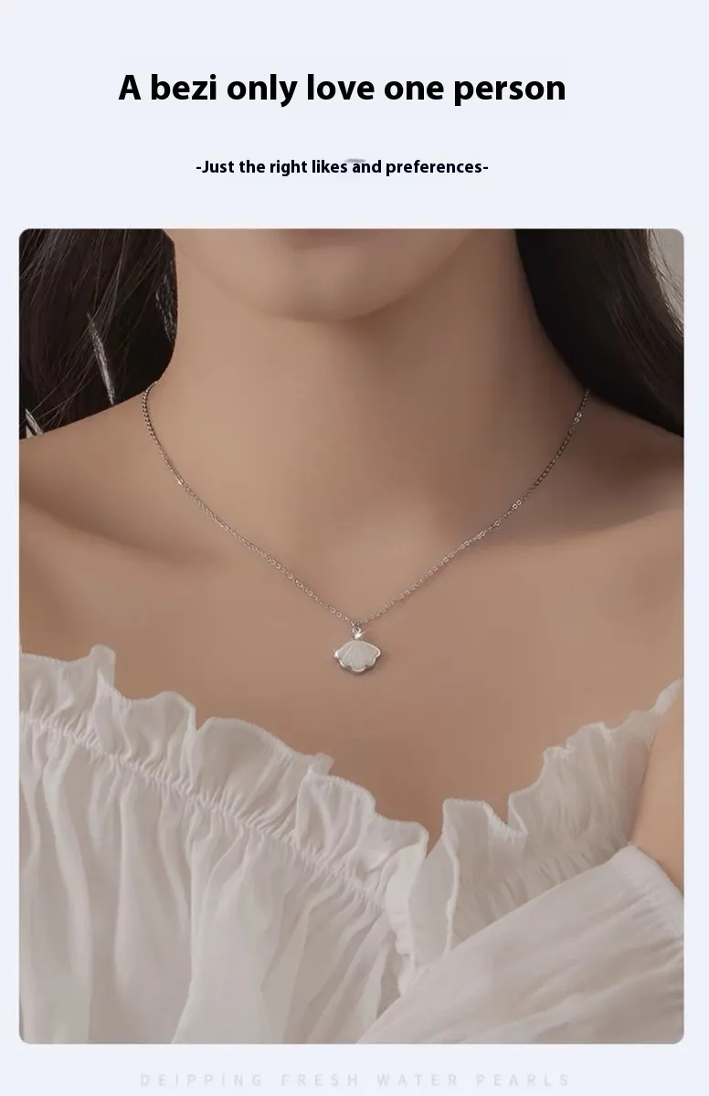 S999 Sterling Silver Shell Necklace For Women Ins Simple Clavicle Chain