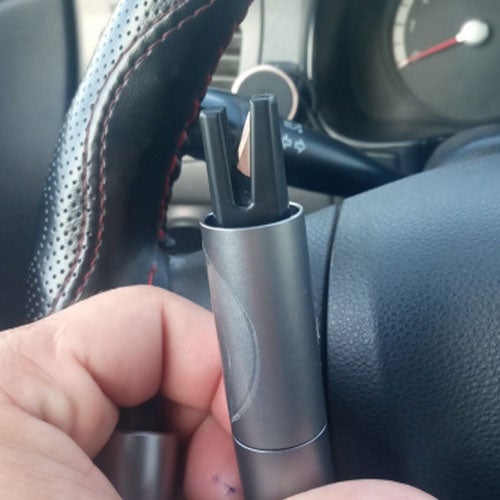 This incredible handheld tool can break car windows and cut through seatbelts. In case of an accident, simply use the pointed end to hit the corner of the window until it shatters. Then, use the blade to cut through the seatbelt and free yourself or others from the vehicle.