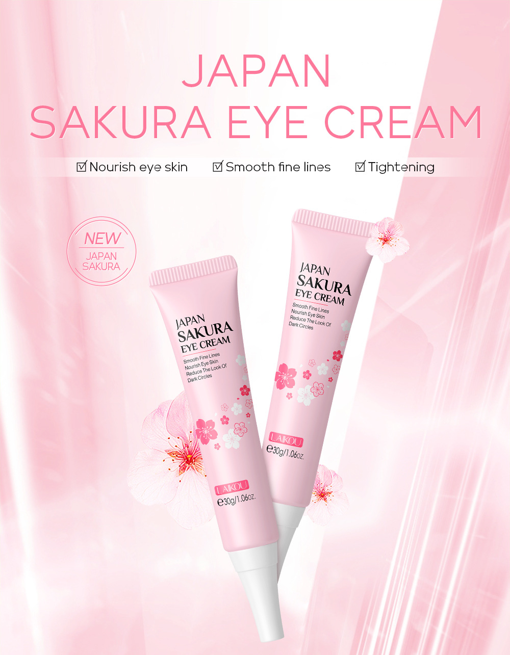 The Sakura Eye Cream contains anti-aging ingredients like peptides, collagen, and elastin, which help to firm and tighten the skin. These ingredients reduce the appearance of fine lines and wrinkles, promoting a smoother and more youthful look.