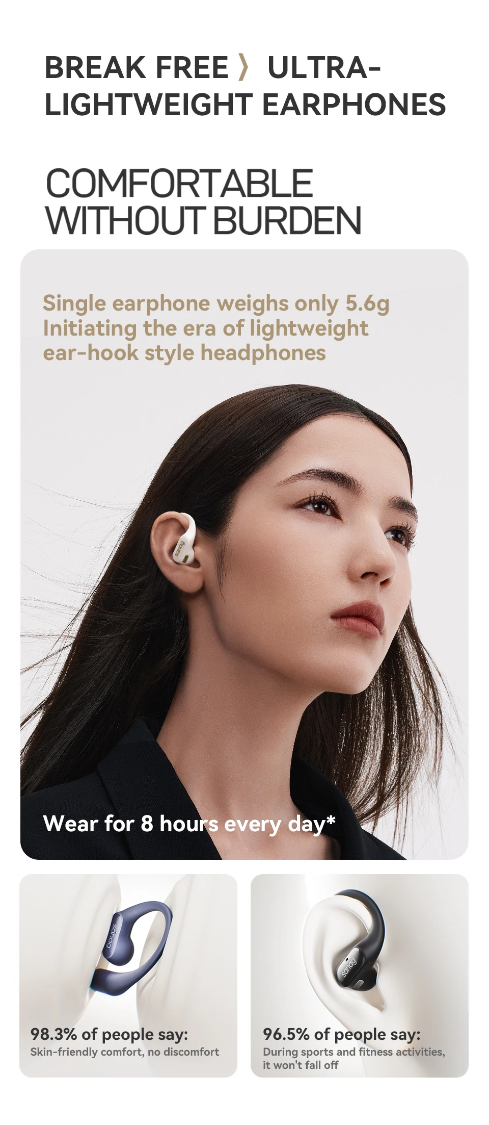 Break the traditional barrier between listening and the environment with an open design that allows ambient sound awareness, enhancing safety