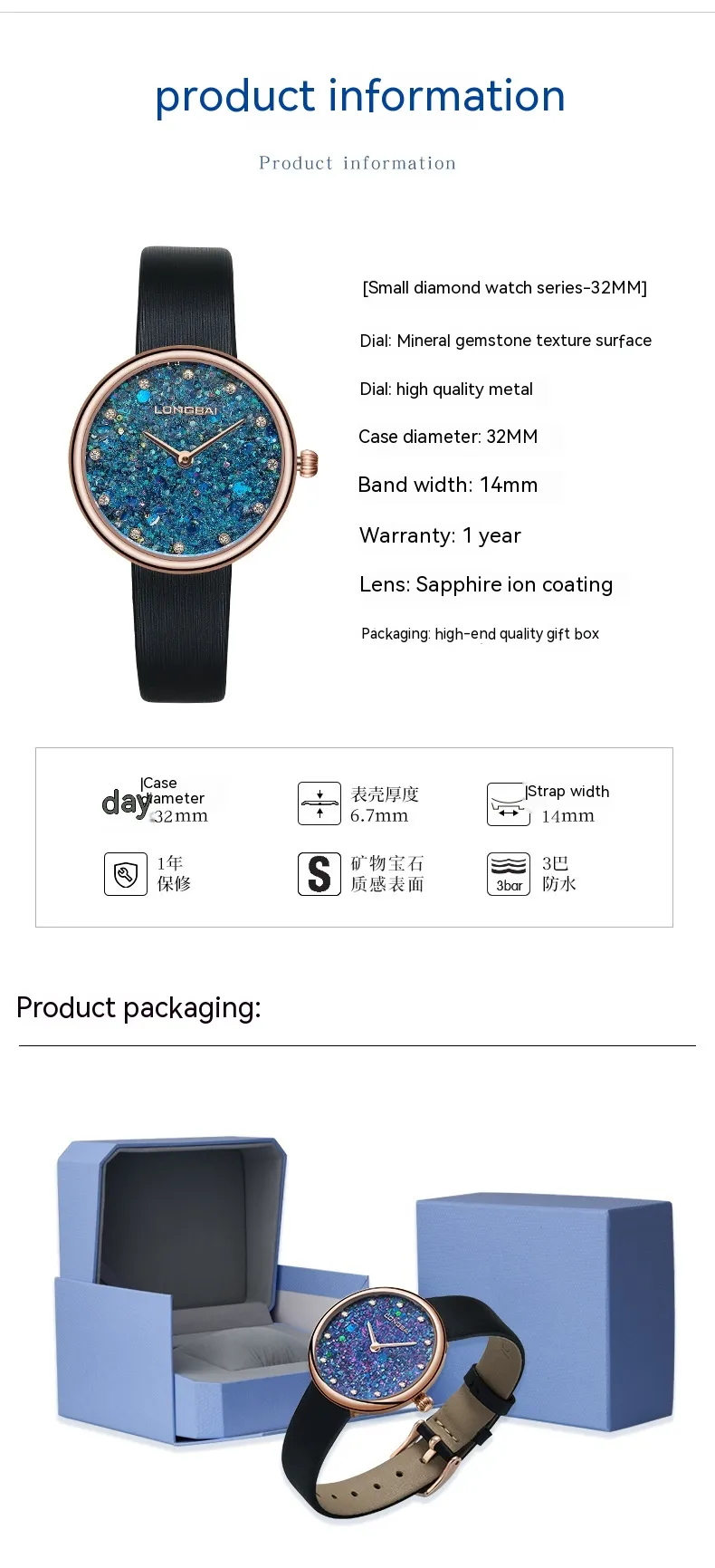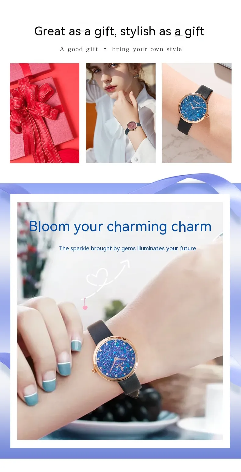 Perfect as a gift or a personal indulgence, the Sapphire Simple and Natural Small Diamond Women's Watch is a testament to understated luxury. Its timeless design suits all styles, making it a versatile addition to any jewelry collection. Whether you’re attending a formal event, a casual gathering, or enjoying a quiet day, this elegant watch enhances every moment. Embrace the beauty of simplicity and sparkle with this sophisticated timepiece, designed for women who appreciate elegance in every detail.