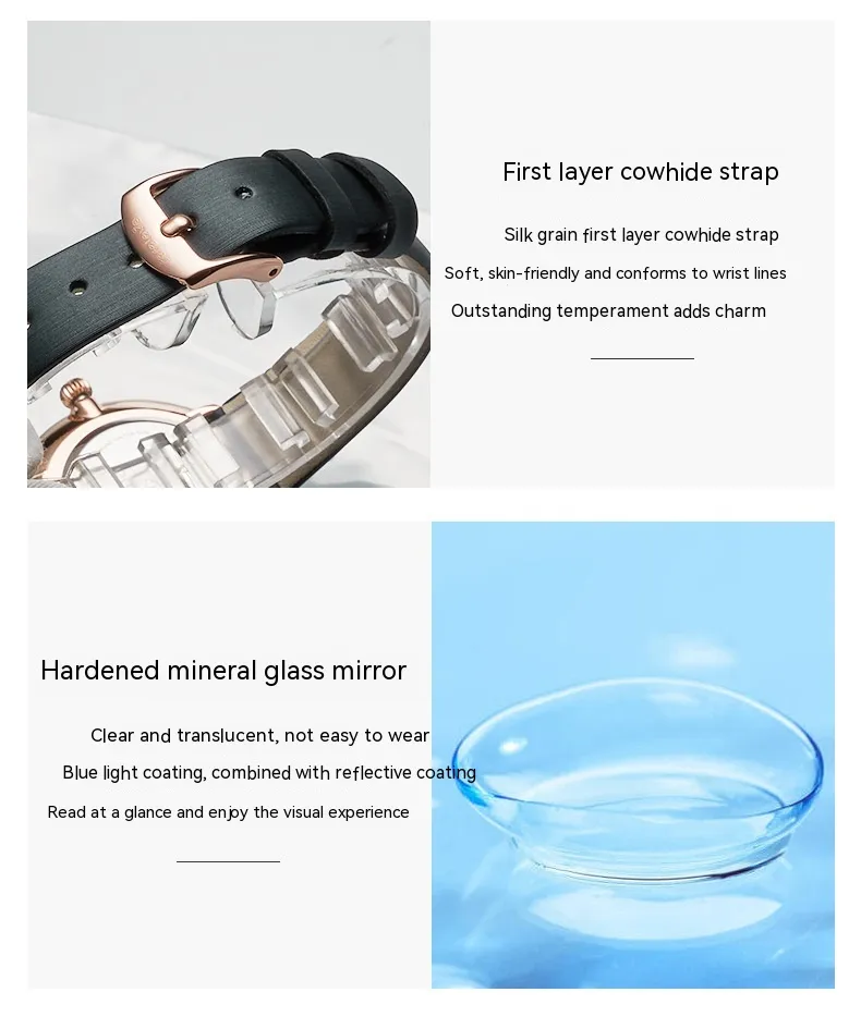 Indulge in subtle elegance with the Sapphire Simple and Natural Small Diamond Women's Watch, a perfect blend of minimalism and luxury. This beautifully crafted timepiece features a sapphire crystal face that offers exceptional clarity and scratch resistance, ensuring that it remains pristine for years to come. The minimalist design is elevated with delicate small diamond accents, providing just the right touch of sparkle without overwhelming its graceful simplicity. Ideal for both casual and formal wear, this watch effortlessly complements any outfit, making it a timeless accessory for modern women.