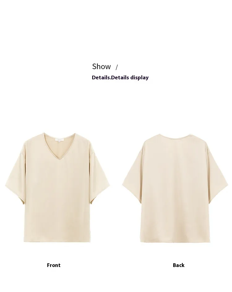 With its luxurious satin finish, this V-neck loose top is a must-have addition to your wardrobe for those who appreciate chic simplicity and a timeless design.