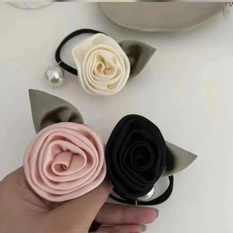 Satin Retro Rose Hair Ring Headdress French Flower Simple