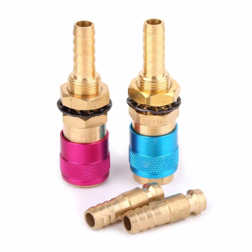 The socket comes in red and blue variants, allowing users to easily distinguish between different water lines during installation and maintenance. This color-coding feature helps welders avoid mixing up inlet and outlet lines, ensuring the proper flow of water through the cooling system. The intuitive color coding streamlines setup and reduces potential errors, particularly in fast-paced work environments.