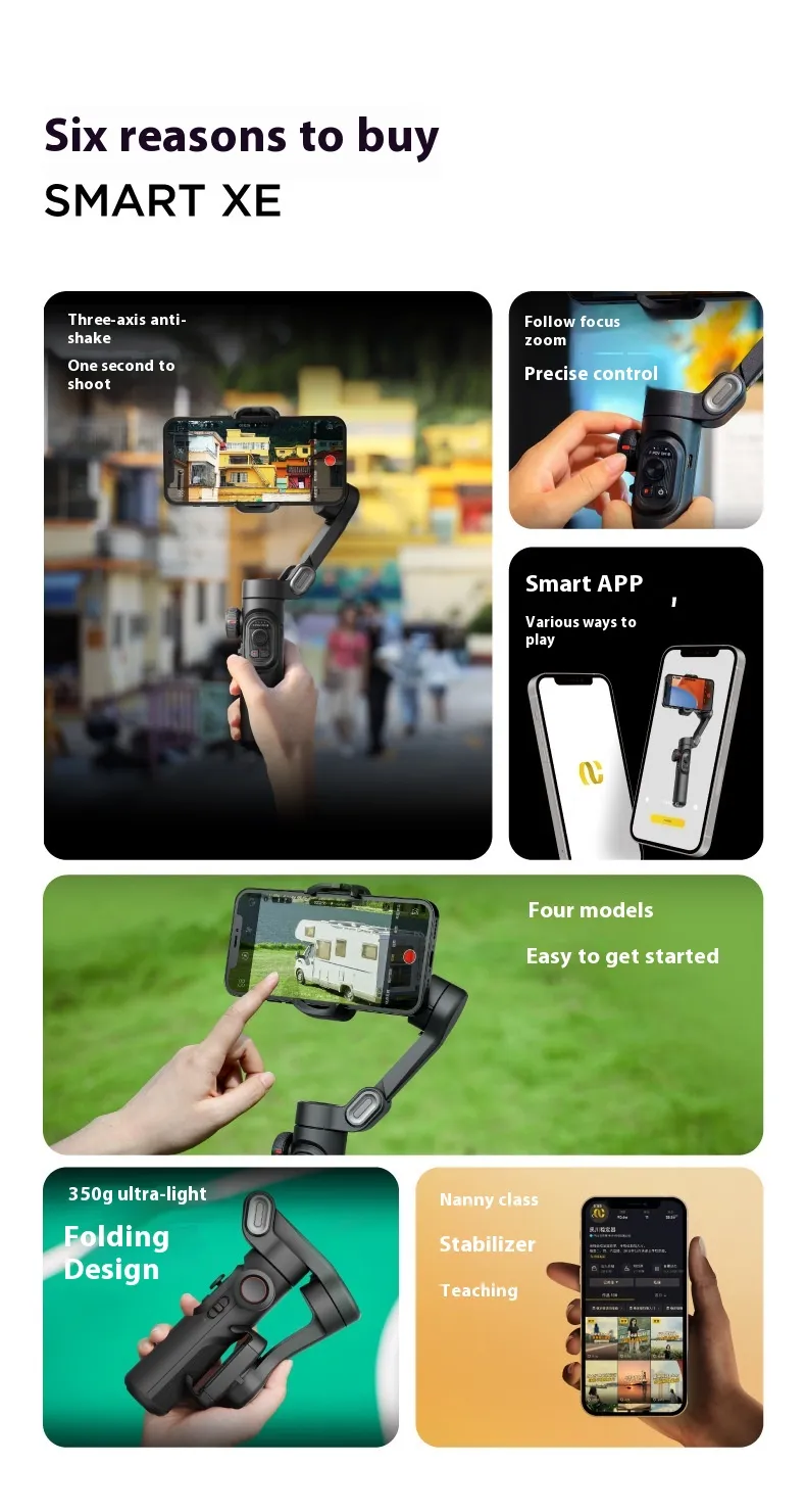 Selfie Three-axis Anti-shake Hand-held Tripod Head Mobile Phone Stabilizer