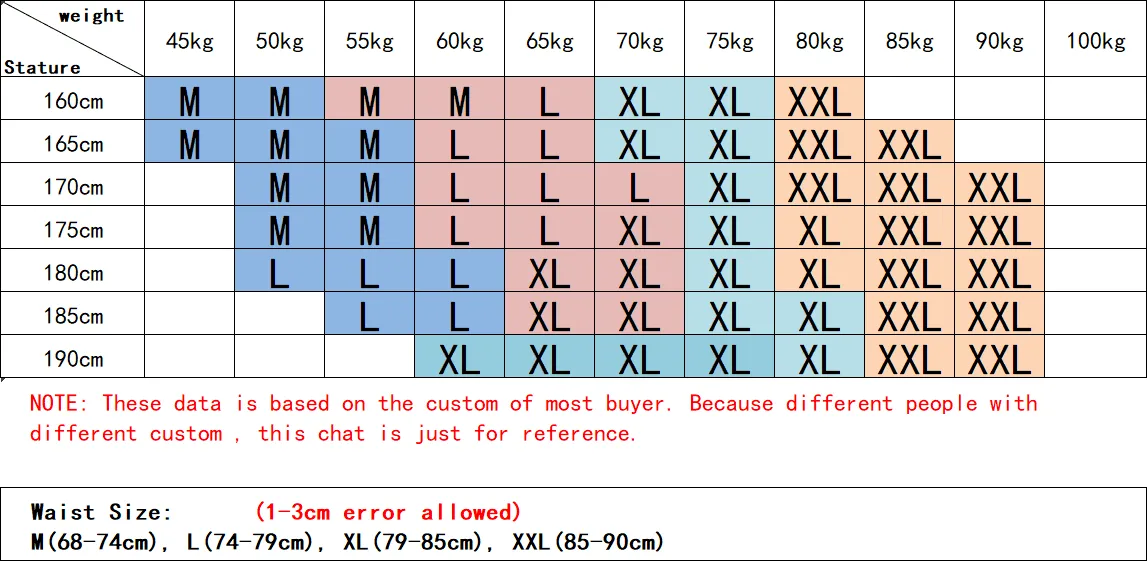 1. Asian sizes are 1 to 2 sizes smaller than European and American people. Choose the larger size if your size between two sizes. Please
