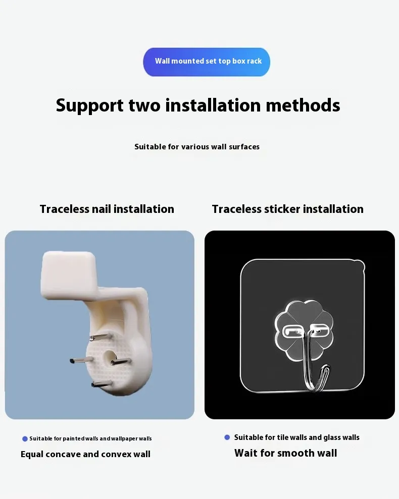 Punch-Free Installation: No need for drilling or screws, making it easy to install and remove without damaging the wall or