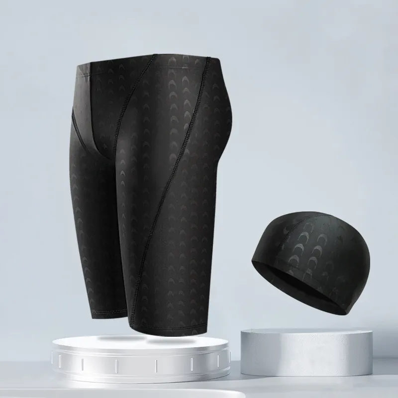 This comprehensive swimwear set includes a high-performance swimsuit, a swimming cap, and fifth pants, offering a full package for water activities. The high elasticity of the fabric allows for a snug, supportive fit, while the shark skin material enhances body hydrodynamics. Ideal for competitive swimmers or recreational enthusiasts, this quick-drying, breathable suit helps improve your swimming experience by providing the comfort, flexibility, and speed needed in the water.