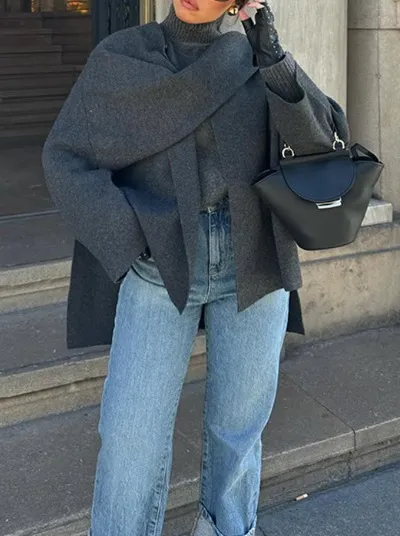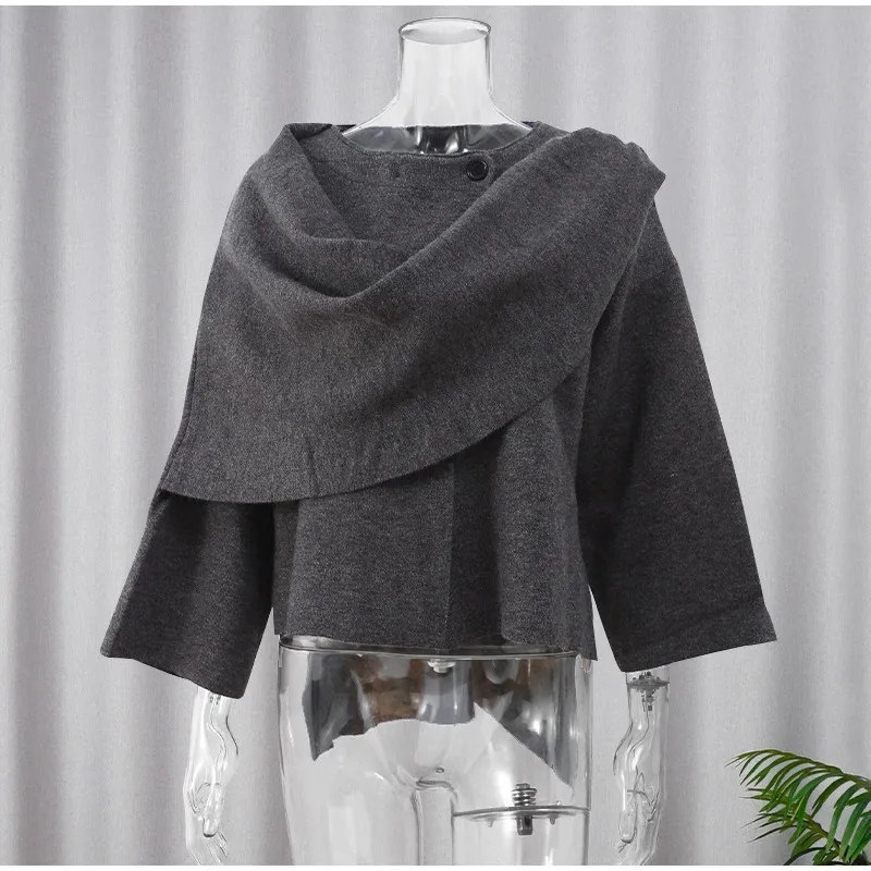 Shawl Cape Scarf Collar Knitted Short Overcoat Jacket – Stylish & Cozy Outerwear for Every Season