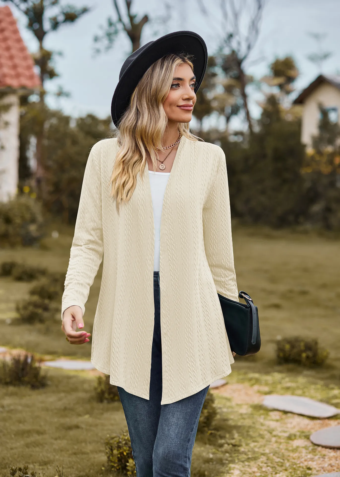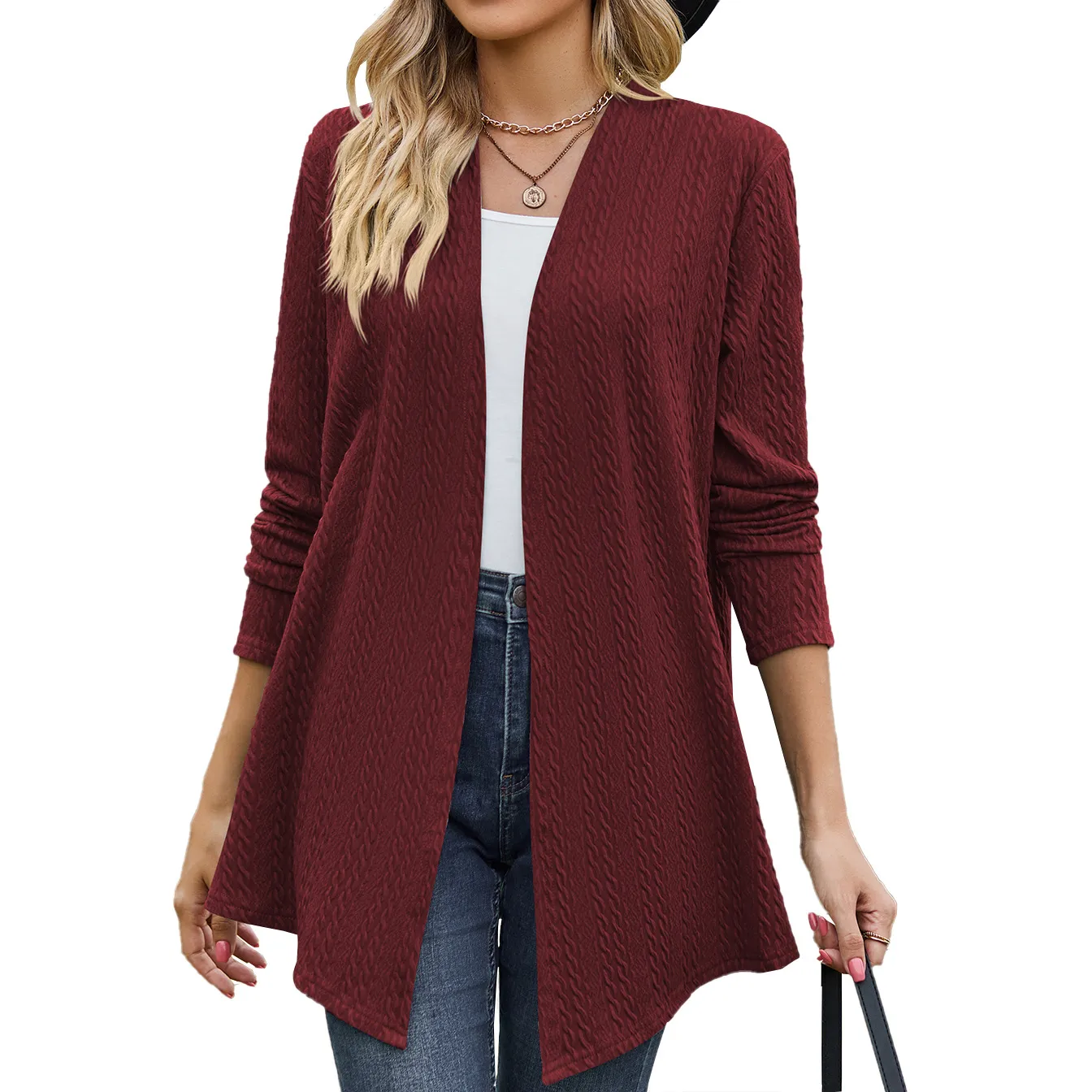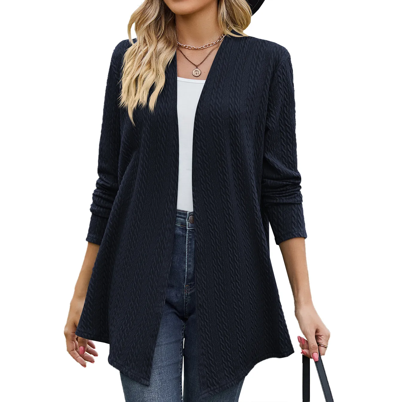 remove, while the lack of buttons or zippers adds to the relaxed, casual vibe. This versatile style allows you to wear the cardigan over any