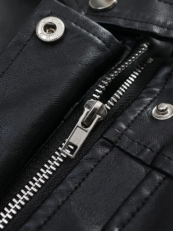 - Sleek and Modern Collar: The short stand collar gives this jacket a streamlined, edgy appearance.
