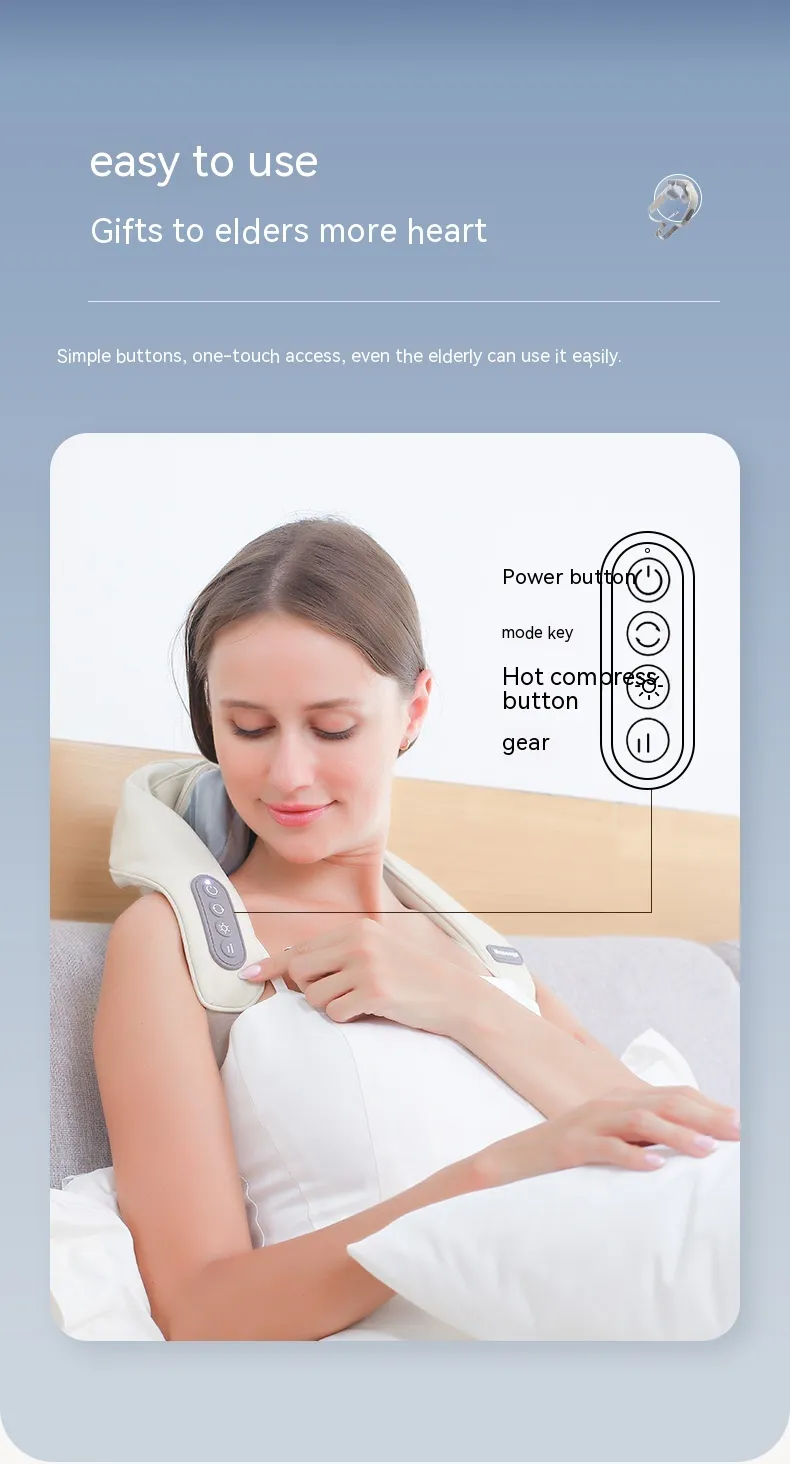 The Shoulder and Neck Massage Instrument is a must-have for anyone experiencing neck, shoulder, and trapezoid muscle tension. Whether you're dealing with stress, muscle stiffness, or discomfort from poor posture, this massager provides effective relief and improves overall muscle health. Its combination of hot compress, kneading massage, and neck lifting technology makes it a versatile tool for achieving a complete, full-body relaxation experience.
