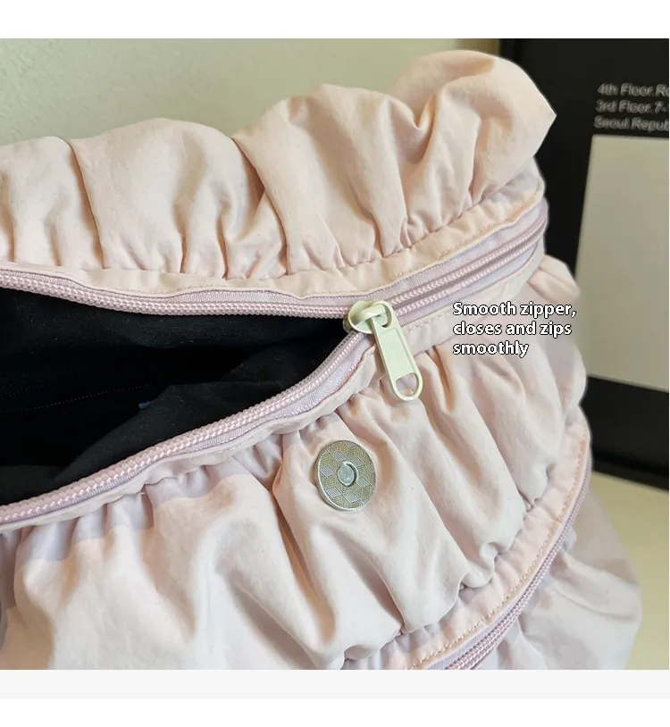 The pleated design exudes elegance, making this bag suitable for both casual and formal occasions.