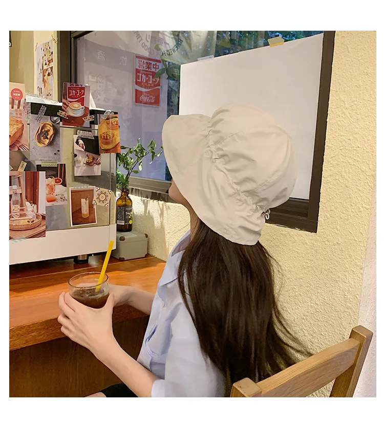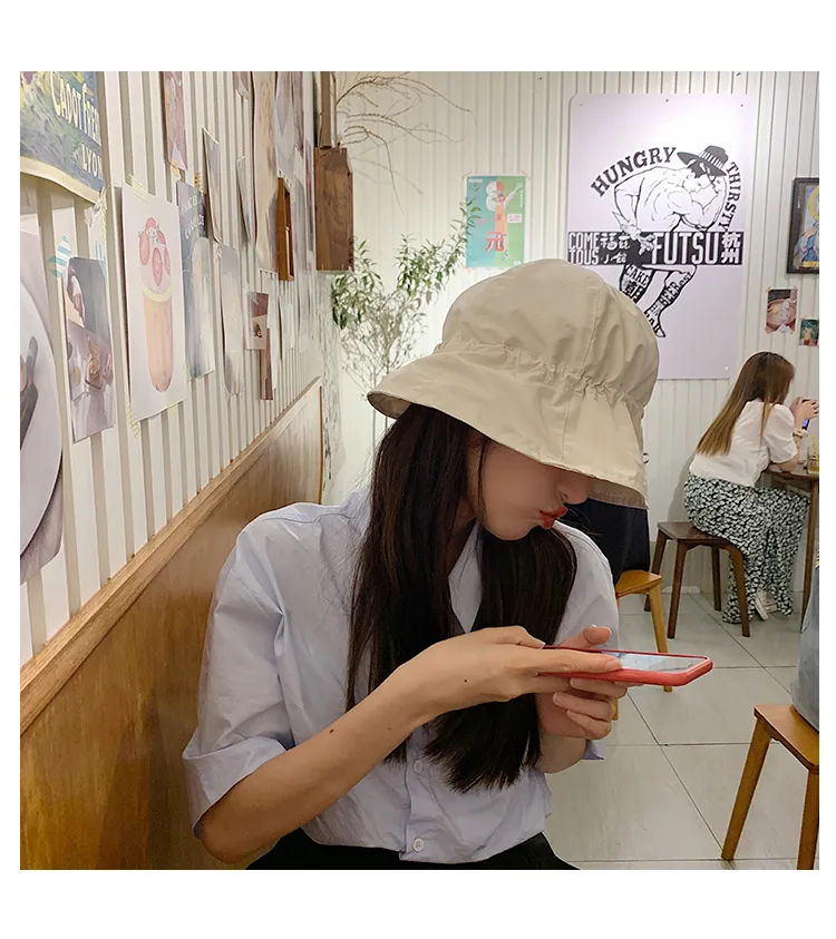 Korean Style Drawstring Basin Hat: Chic Sunscreen Protection for Women