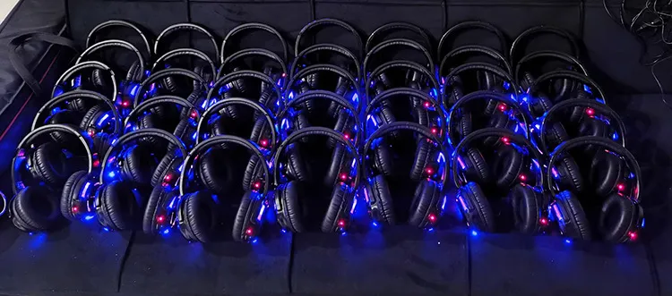 Each headphone is equipped with LED lights that correspond to the selected audio channel. This visual cue adds to the ambiance of the event and helps guests identify which channel their peers are listening to.DJ TechTools+4Place Over Ears+4goodtimesonly.fun+4