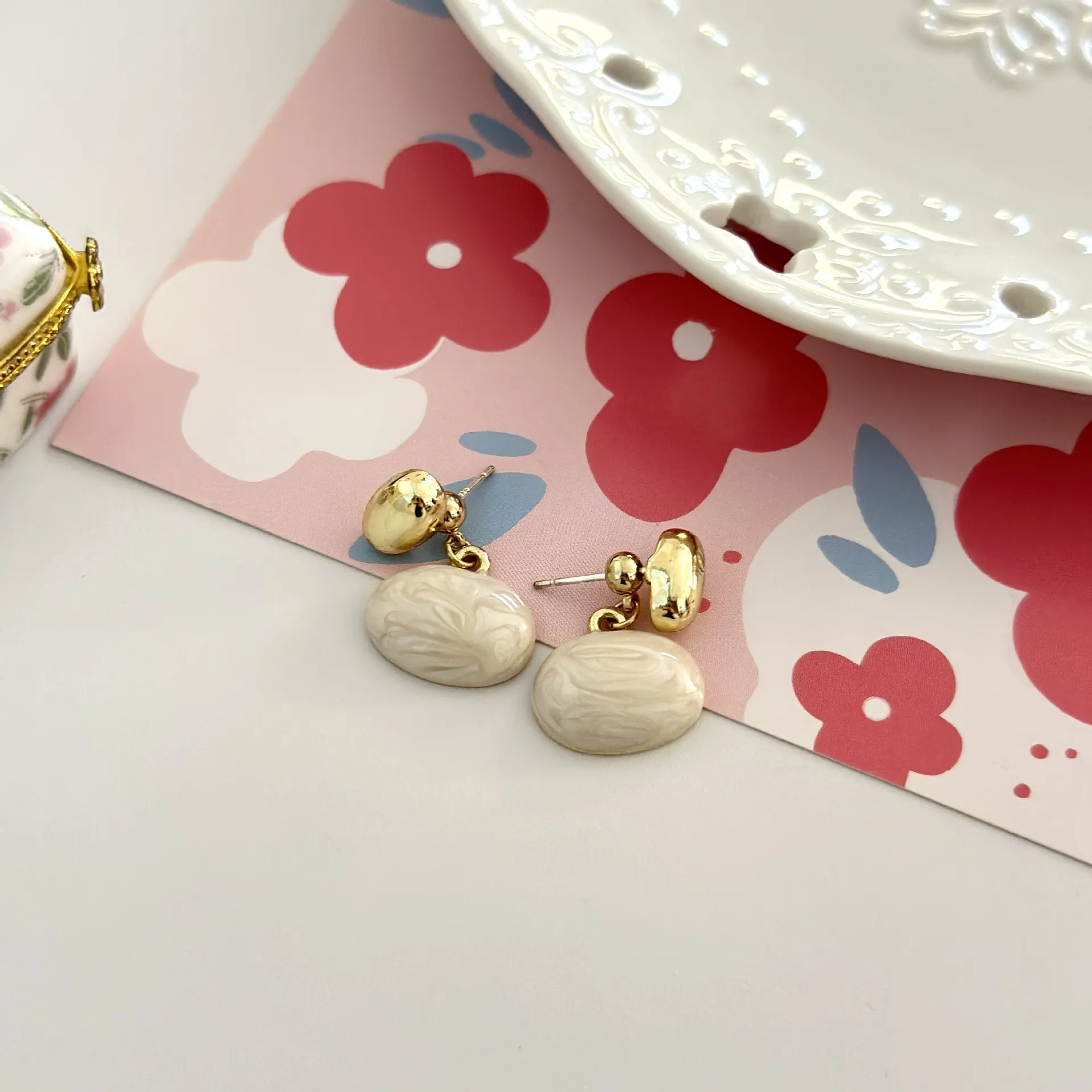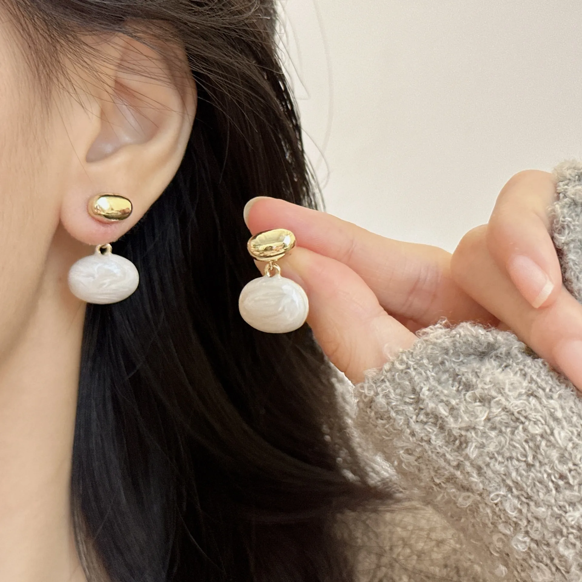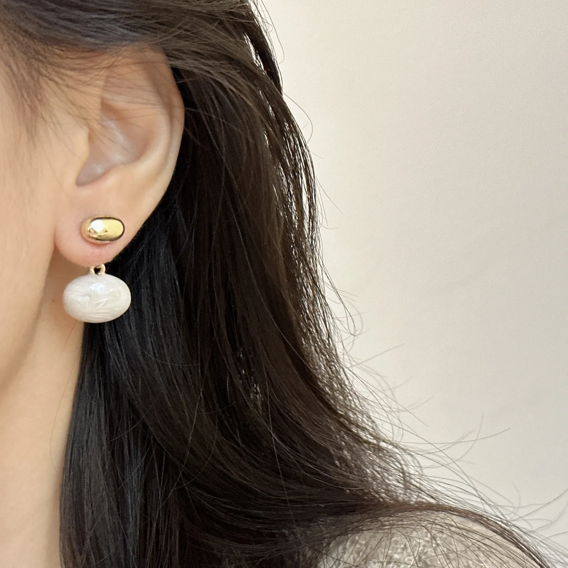 Silver Needle French Retro Dual-wear Bean-shaped Stud Earrings