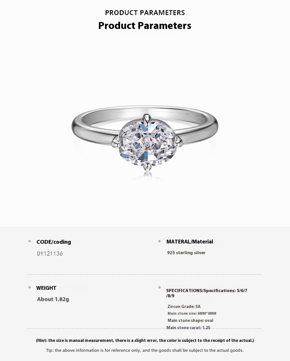 Silver S925 White Denier Oval Single Diamond Female Ring - Simple Fashion Accessories