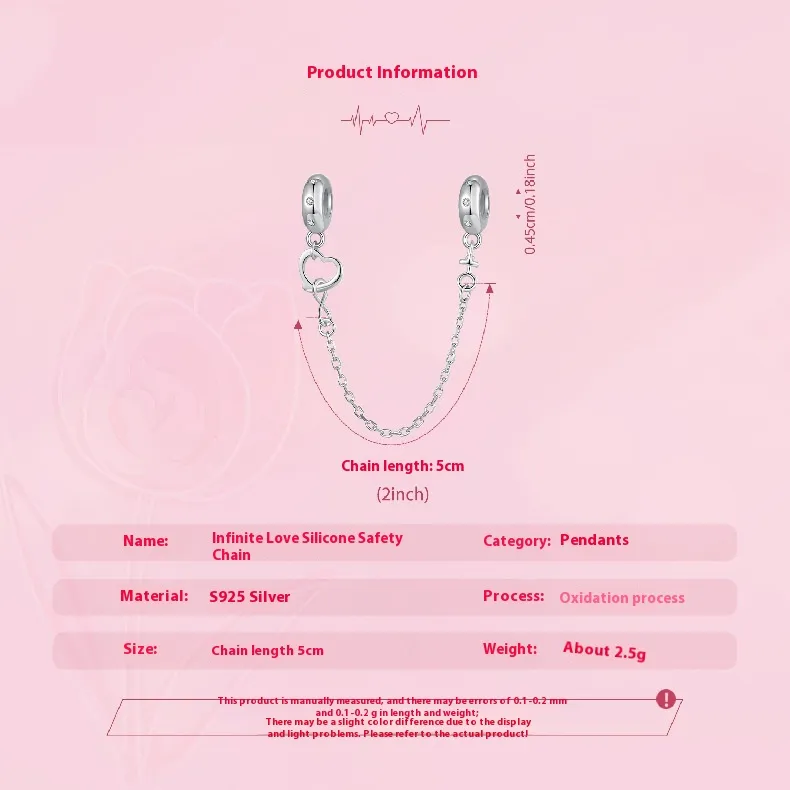Silver Ziyun Infinite Love Silicone Safety Chain 925 Silver DIY Bracelet String Beads Sub-accessories Charm Mother's Day