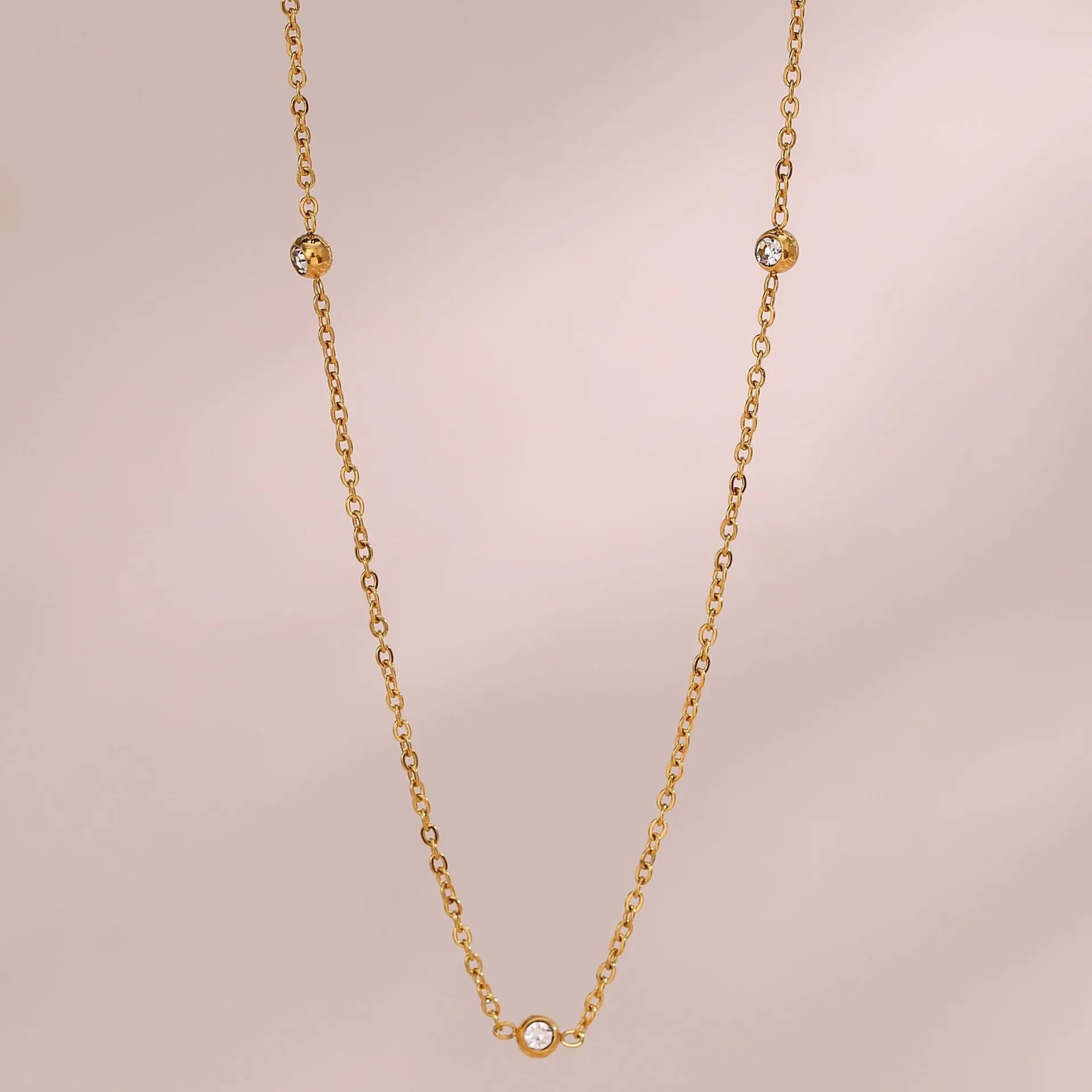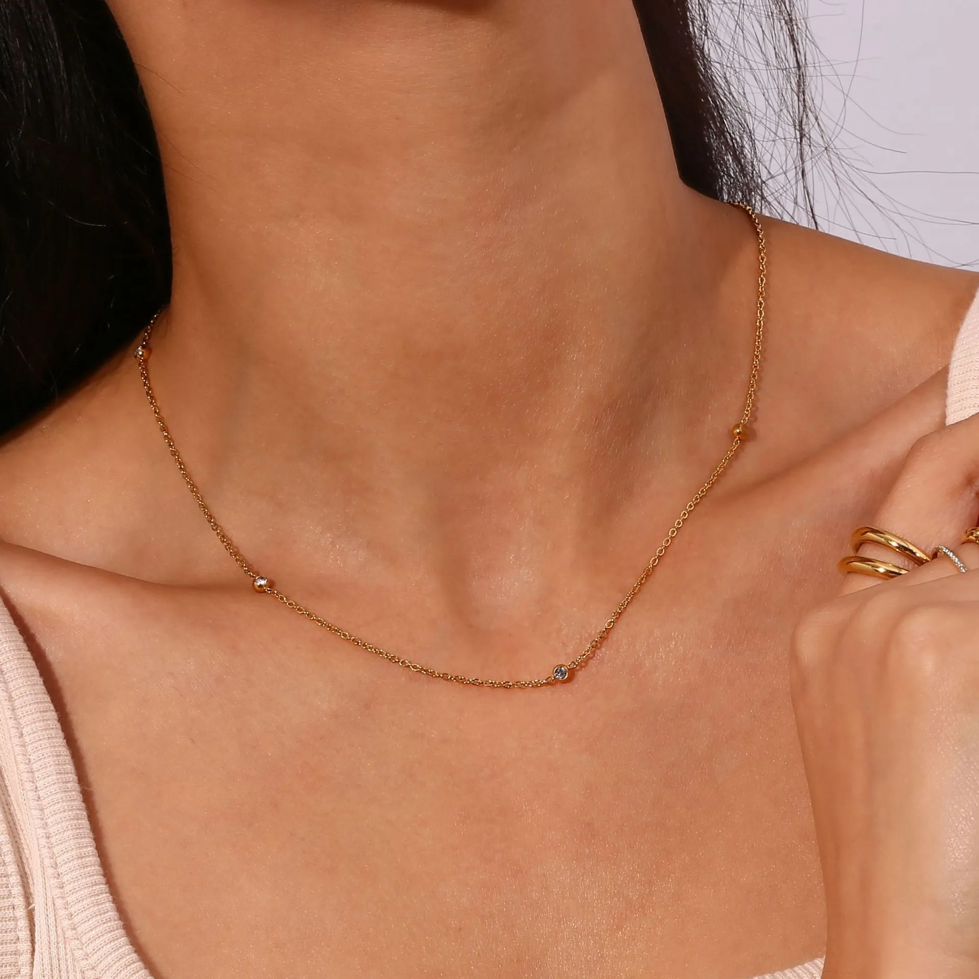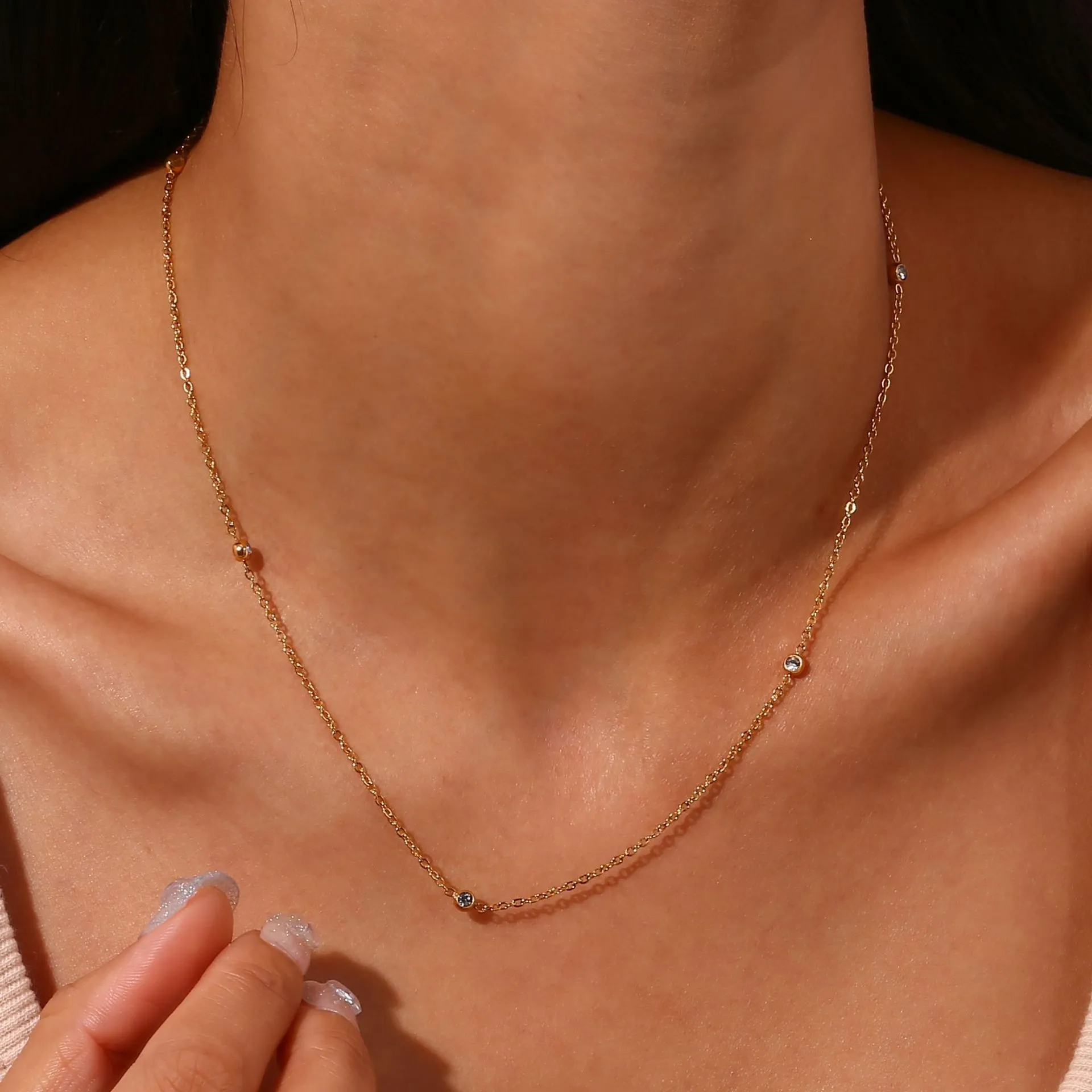 Crafted with high-quality, hypoallergenic metal, this delicate necklace sits comfortably around the neck, providing a subtle sparkle that enhances your natural style. Whether worn alone for a clean, refined look or layered with other necklaces for a more fashionable statement, it adapts seamlessly to any outfit or occasion.