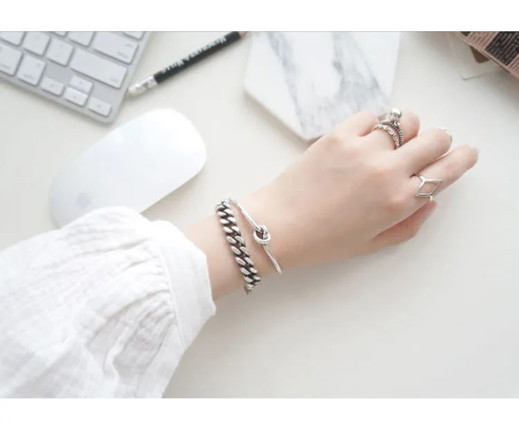 Stacking: For a trendy, layered look, pair your Single Knot Bangle with other bracelets, such as gold