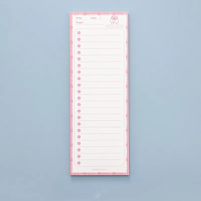 Inspired by the minimalist "Ins Wind" style, this notepad brings a modern, fashionable touch to your desk. The long-format layout allows for free-flowing ideas, perfect for organizing your thoughts, tasks, or creative works in a way that’s both visually pleasing and easy to read.