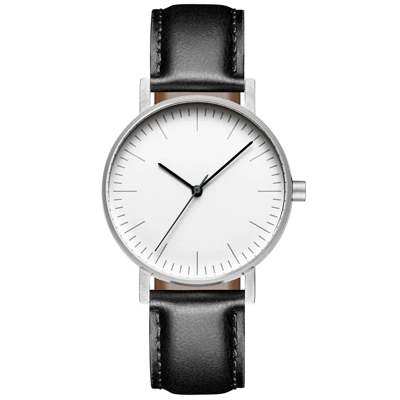 Simple leather wristwatch for men and women