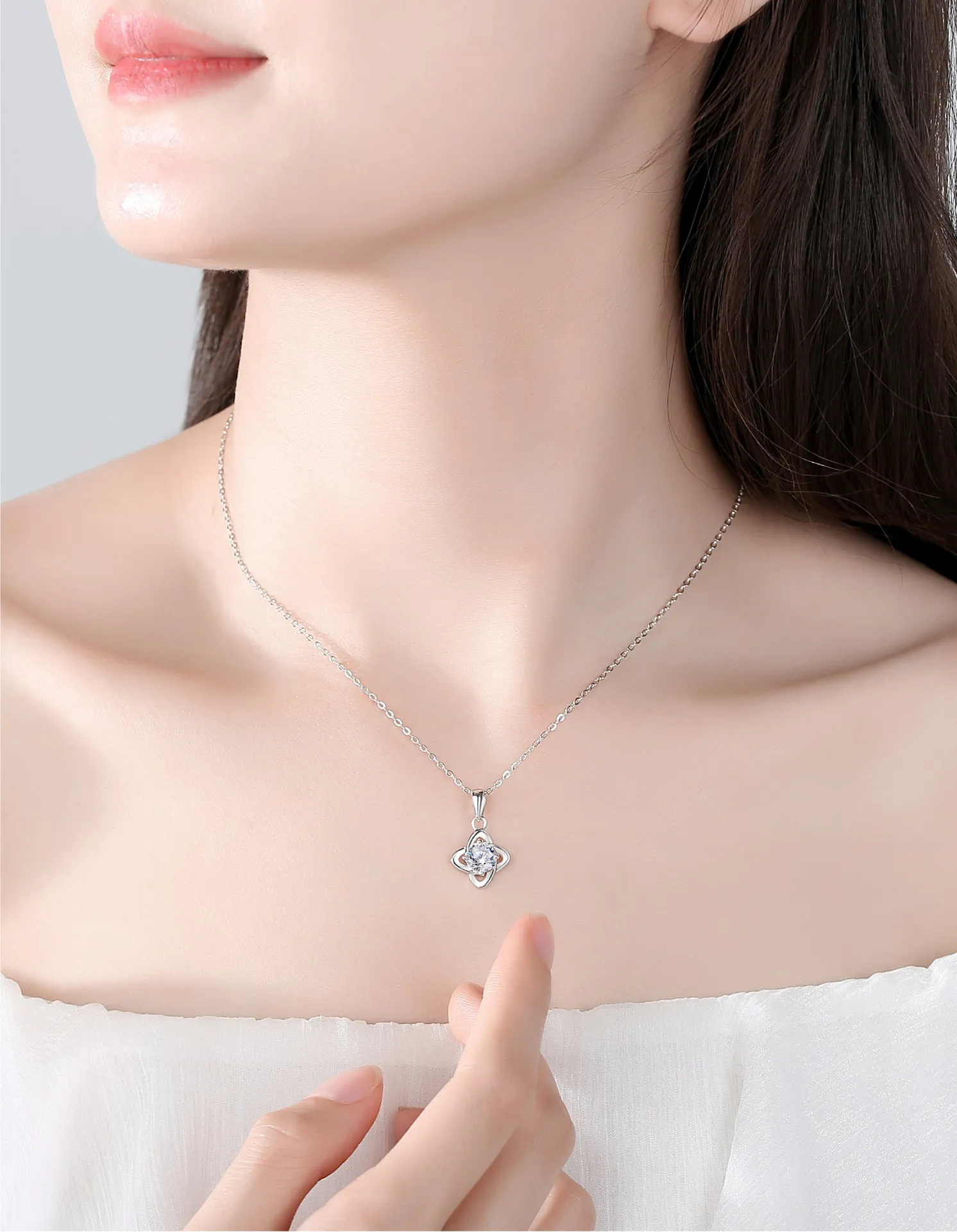 Color: NC3685_ white gold Mosan stone sterling silver necklace