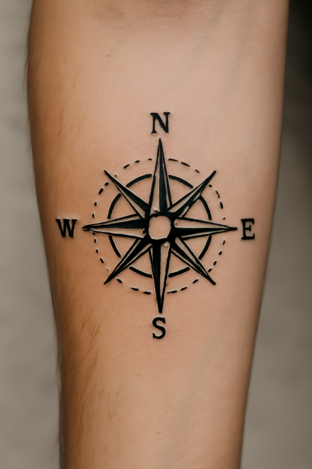 Simple Nautical Compass Tattoo - A Symbol of Direction and Adventure