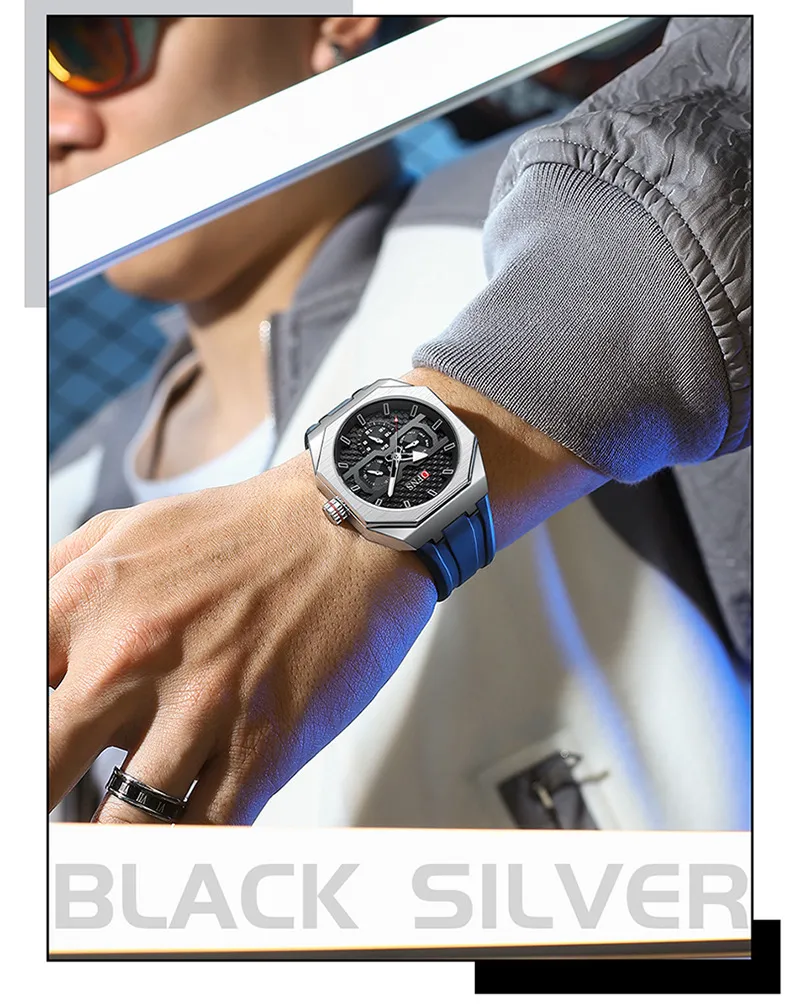 The Simple Strip Nail Scale Three Eyes and Six Needles Fashion Waterproof Quartz Watch is a sophisticated timepiece designed for those who appreciate minimalist style, precision, and practicality. Featuring a sleek, contemporary design with three sub-dials and a robust six-needle movement, this watch offers more than just a way to tell time—it's a statement of refined taste. Whether you’re attending a formal event or adding a touch of elegance to your everyday style, this watch is the perfect accessory.
