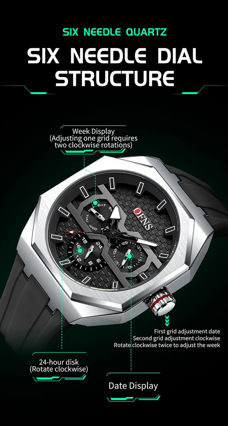 - Sophisticated Design: The minimalist yet detailed dial and six-needle movement make it a unique and eye-catching accessory.
