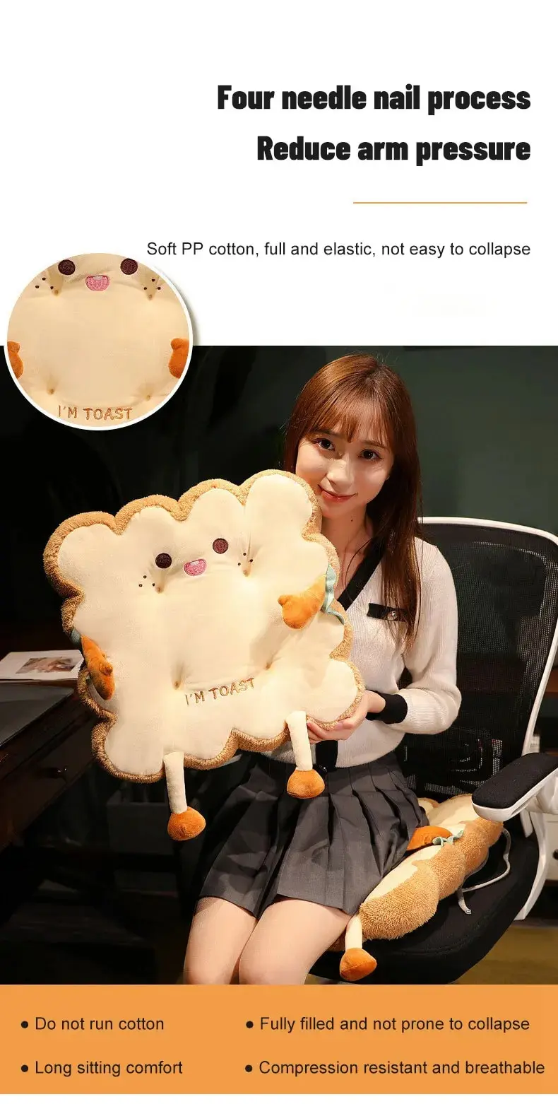 Cute and Fun Decor: The toast-shaped cushion is not only functional but also adds a fun, light-hearted