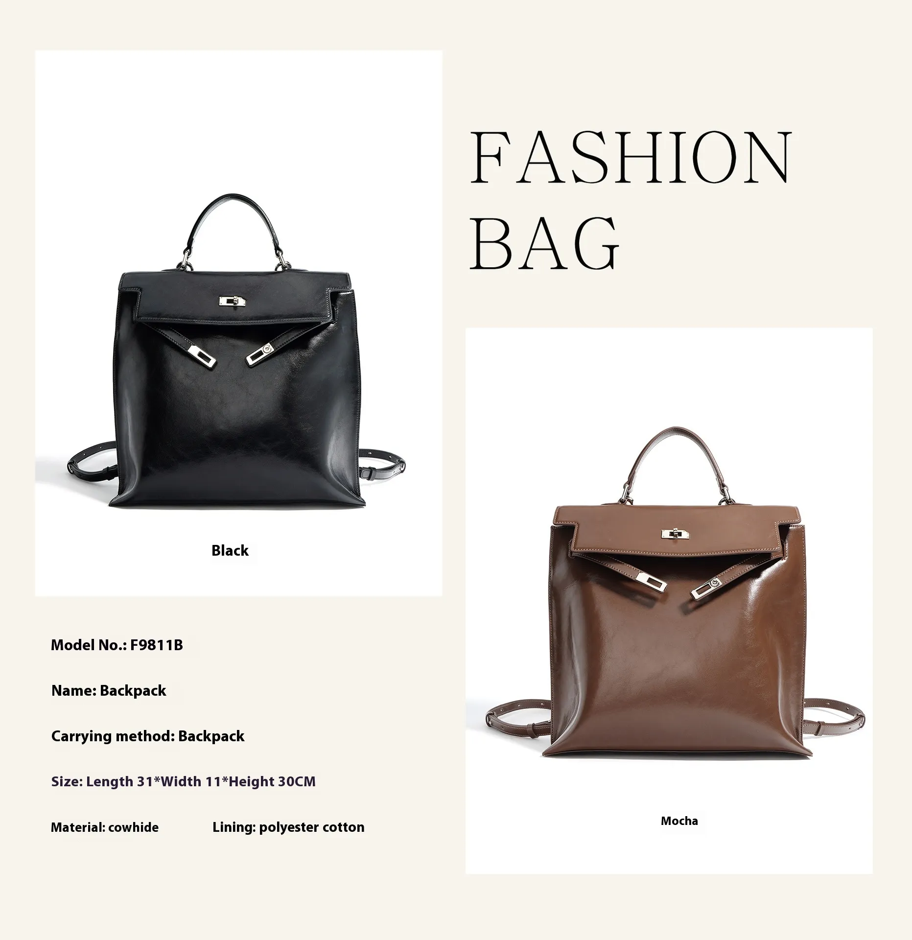 Single Double-shoulder All-matching Large Capacity Premium Leather Handbag