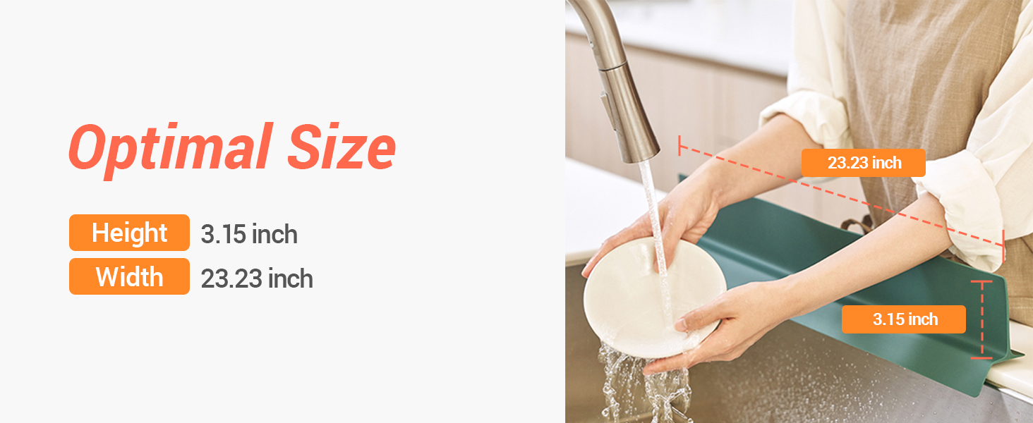 - ADVANCED ADSORPTION TECHNOLOGY: Our sink splash guard stands out with its superior adsorption strength and durability, thanks to the 100% silicone material. The design ensures that the guard stays firmly in place without slipping, offering a reliable solution to keep water splashes at bay. The special adsorption plate design prevents bite and detachment, maintaining its position even during vigorous dishwashing.