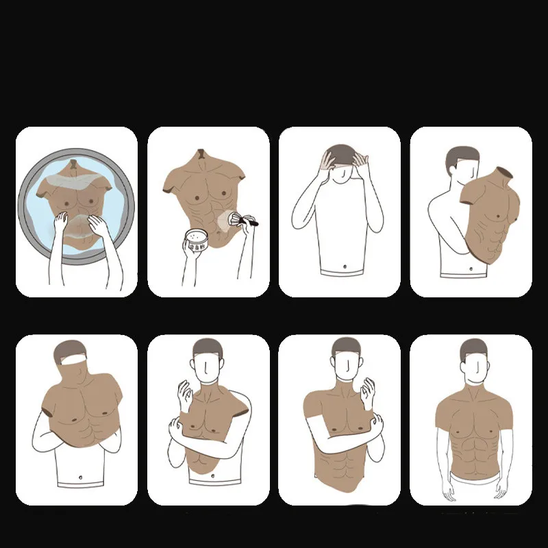 Instant Abs: Designed with realistic six-pack abs, this suit creates the illusion of a well-defined, muscular physique