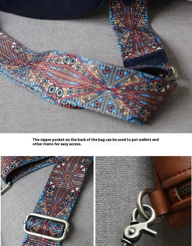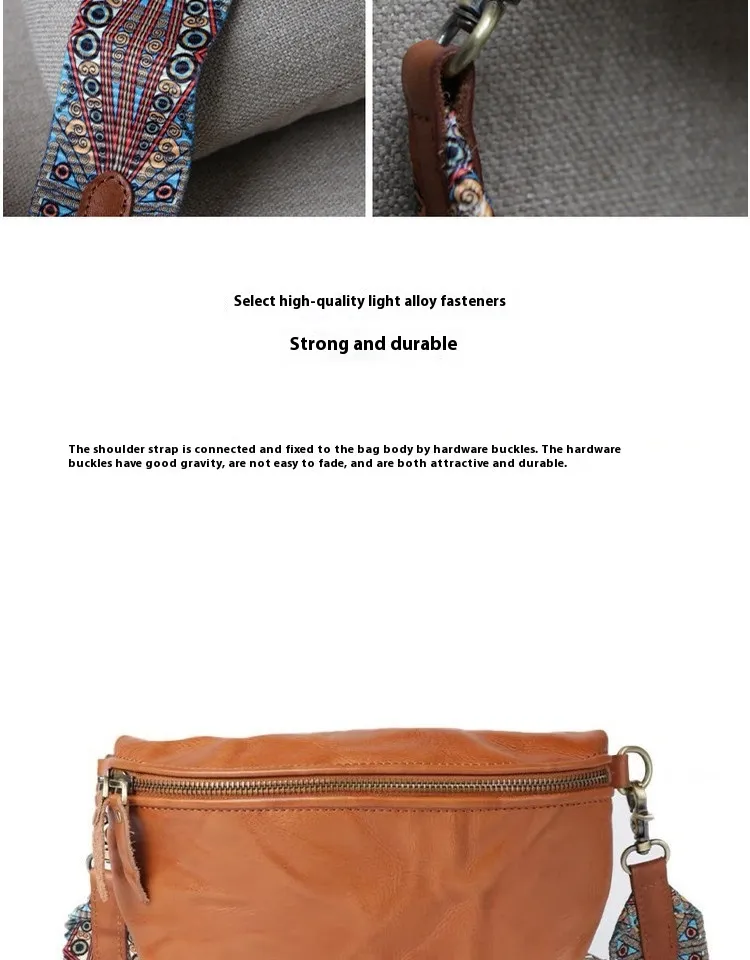 Skeleton-skin Saddle Bag Wide Shoulder Strap Top Layer Cowhide Retro Simple Bohemian Style