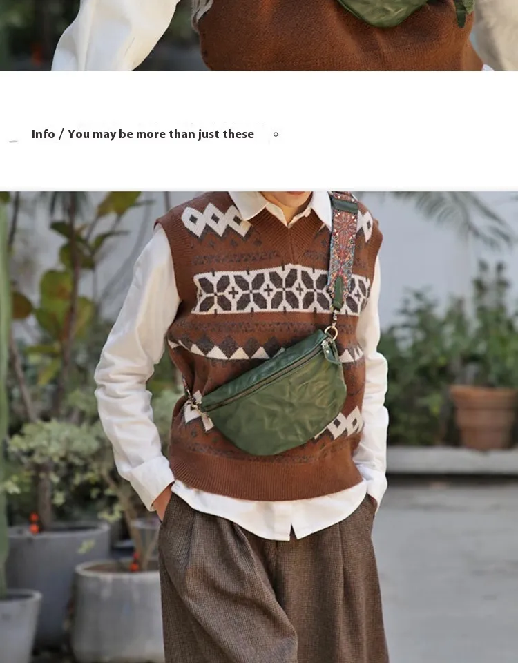 The Skeleton-Skin Saddle Bag is a sophisticated yet practical accessory that combines the timeless appeal of top-layer cowhide leather with the effortless charm of Bohemian style. This wide shoulder strap bag features a distinctive retro design, making it a must-have for those who appreciate unique, handcrafted fashion. Ideal for daily use or special occasions, it offers ample space for your essentials while adding a touch of flair to any outfit.