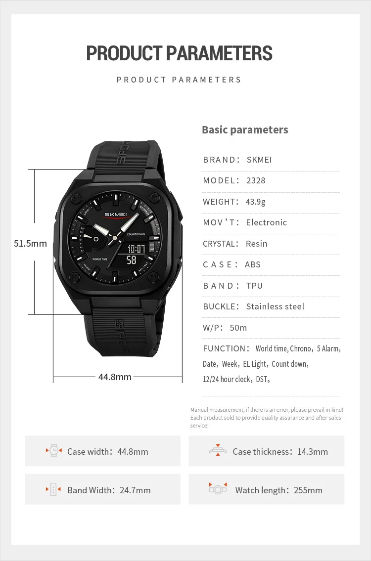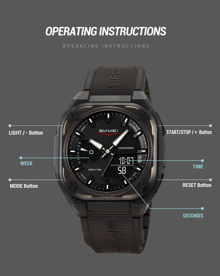 The SKMEI Business Digital Electronic Watch is designed for men who demand precision, durability, and style in their daily lives. Combining modern technology with a sleek design, this watch is ideal for business, casual, and sportswear. With features like waterproof performance, an alarm clock, and a digital display, it offers unparalleled convenience and versatility.
