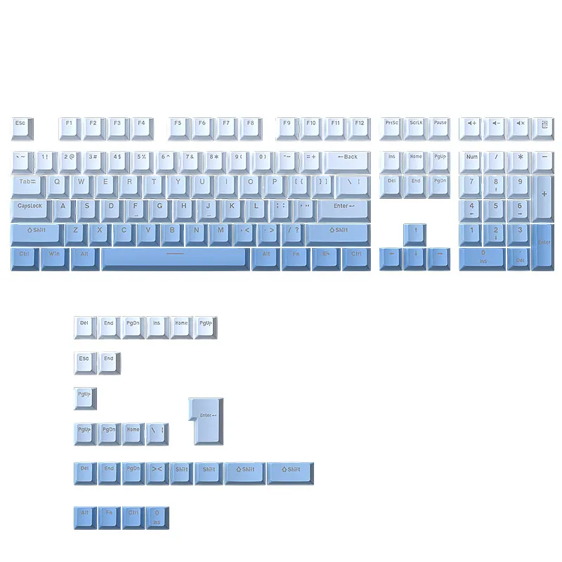 The Sky Blue Gradient Positive Engraving Luminous 134 Mechanical Key Cap is the ideal accessory for those who want to enhance their keyboard's aesthetics without sacrificing performance. Featuring a beautiful sky blue gradient, luminous glow, and durable PBT material, this keycap set offers both style and long-lasting reliability. Perfect for gamers, typists, and enthusiasts looking to personalize their keyboard, these keycaps will add a sleek, modern touch to any mechanical keyboard setup.