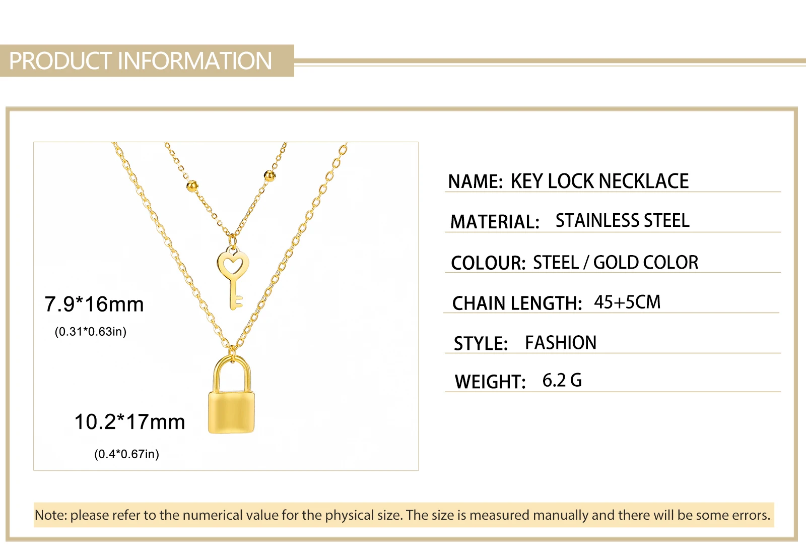 The vendor’s mention of “Wedding Gifts” suggests that the necklace’s synergy extends beyond self-expression to more heartfelt contexts. Weddings revolve around ideas of unity, secrets shared between partners, and forging new beginnings—themes that correspond neatly with a lock and key. Gifting this necklace to bridesmaids or close friends ties them into your big day’s story. Alternatively, a bride or groom might wear it to represent the keys to each other’s hearts, weaving a gentle romantic nuance into their attire.