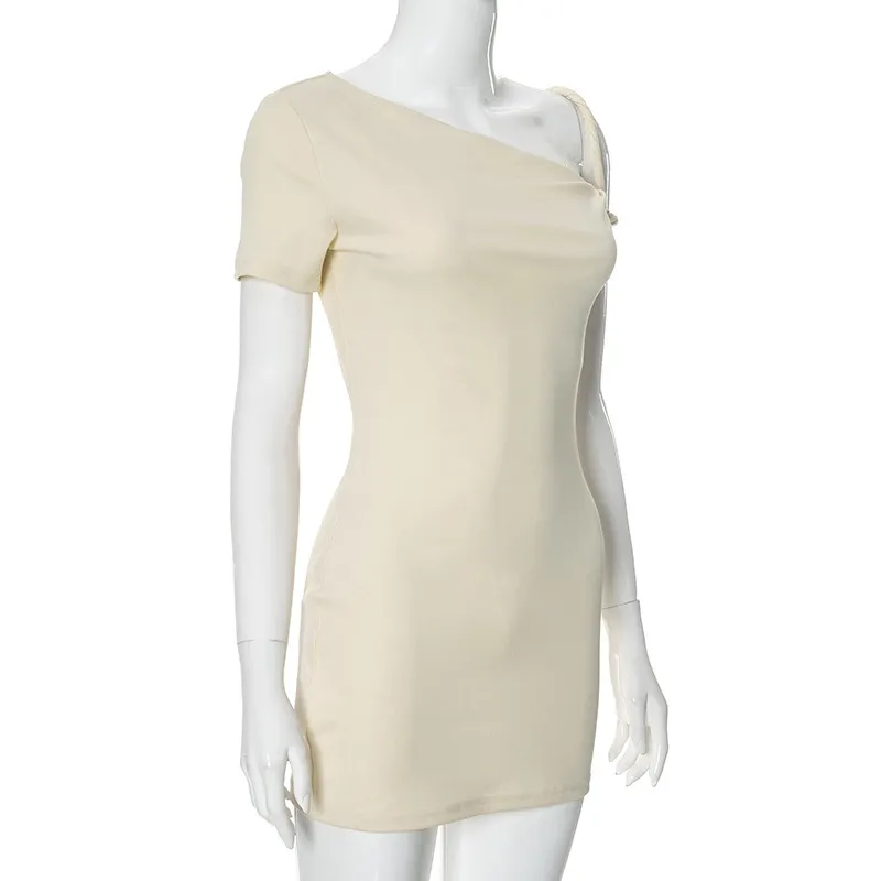 Slim Hip Dress Summer Fashion One-shoulder Short Sleeve Dress