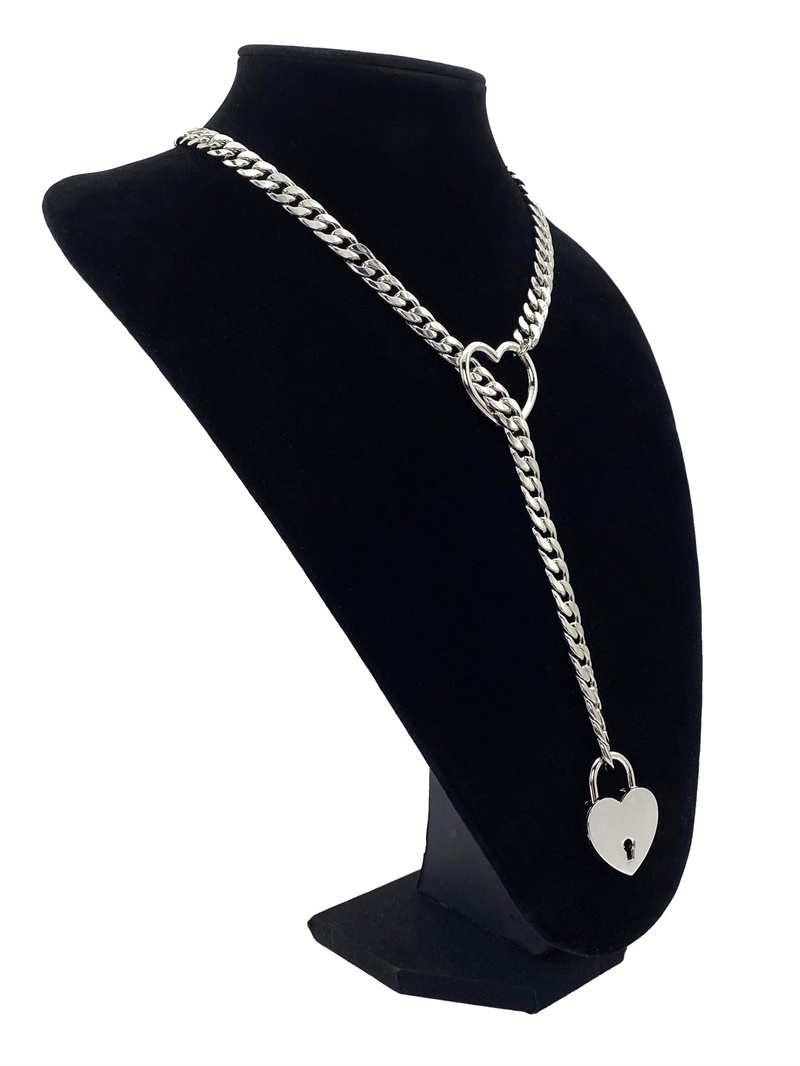 Slip Chain Necklace Heart O-Ring Adjustable Heart Shaped Lock Core With Key